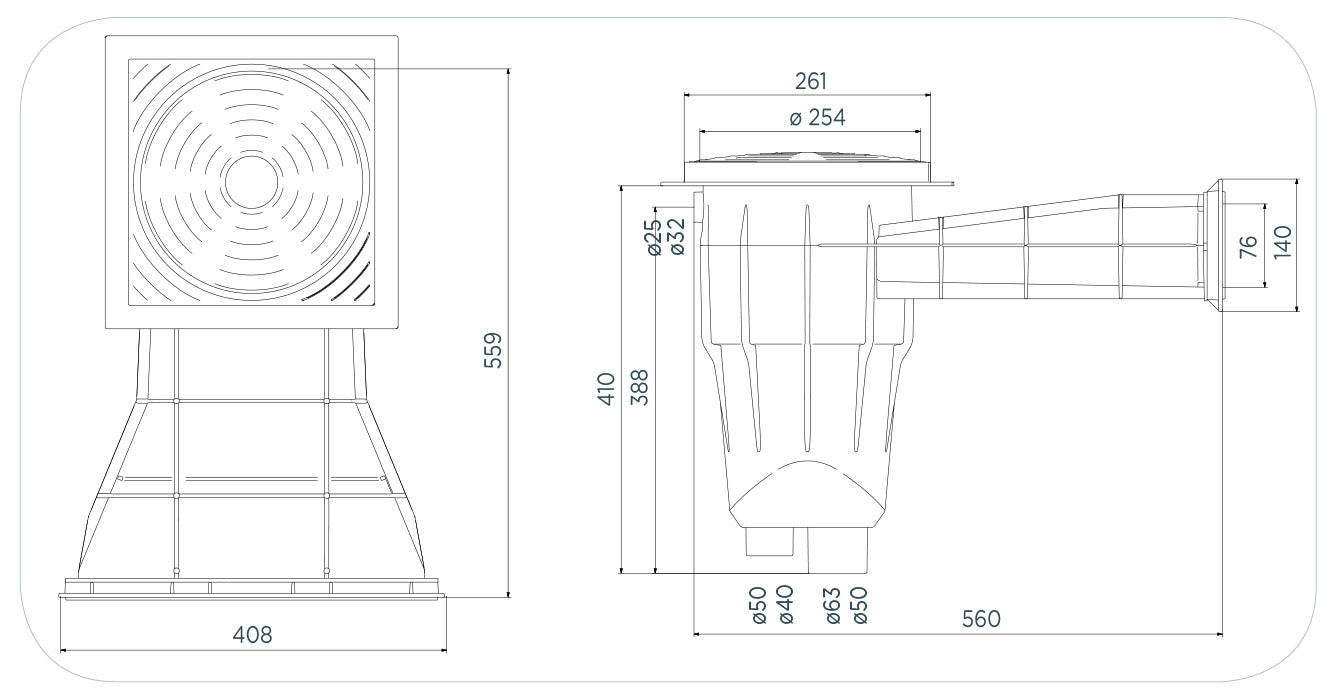 SKIMMER SFIORATORE Ø50F-63M PER PANNELLI E CEMENTO CON RIVESTIMENTO IN PVC