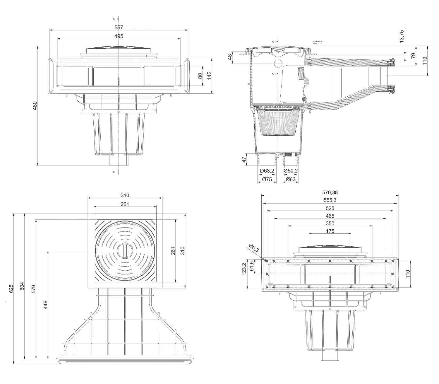 SKIMMER PERFORMANCE Ø50F-63M PER PISCINE CON RIVESTIMENTO IN PIASTRELLE-WHITE